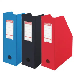 Skladací stojan na katalógy, prospekty, časopisy a iné materiály do formátu A4. Väčšia kapacita stojana so šírkou chrbta 100 mm je ponúkaná v troch základných farbách. Stojany sú vybavené vymeniteľným, popisovateľným papierovým štítkom.