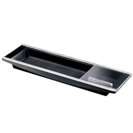 Štýlový plastový organizér na písacie potreby unikátneho dizajnu. Vhodný na uloženie pier, ceruziek, nožničiek a obsahuje priehradky na kancelárske sponky, špendlíky alebo malý poznámkový bloček, ktoré je možné zakryť priehľadným posuvným vekom. Tento organizér na písacie potreby je možné umiestniť na odkladač ESSENTO a ušetriť cenné miesto na pracovnom stole. Rozmery: 320x27x90 mm Dopredaj.