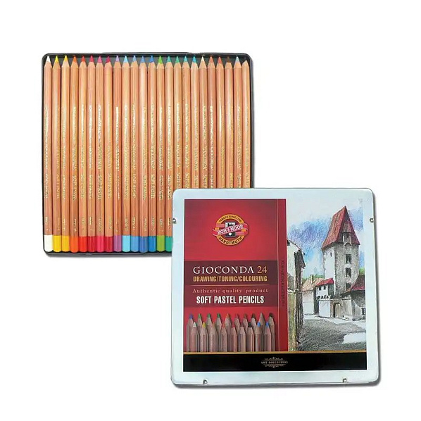 Popis výrobku Suchý pastel v ceruzke Koh-i-noor, 24 ksBaleniesada / 24 ksUmelecké pastlyky. Suchý pastel v ceruzke je určené predovšetkým na detailnú kresbu, balené v plechovej krabičke po 24ks.