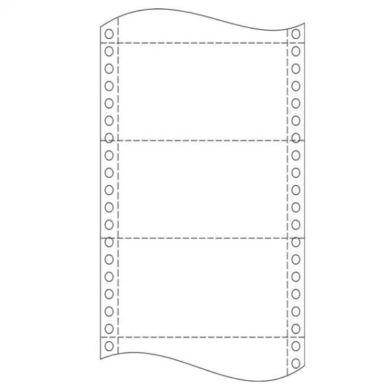 Tabelačný papier šírky 25 cm a dĺžky 12" (304,8 mm) s bočnou perforáciou, rozdelený priečnou perforáciou na tri 4" (101,6 mm) časti.TP – tabelačný papier jednovrstvový,