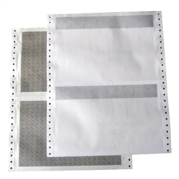Mzdové diskrétne obálky sú určené pre tlač výplatných pások na ihličkovej tlačiari. Vyrobené sú ako tabelačný papier 25x06´´ (1+2). Po vytlačení mzdových údajov sa vrchný originál oddelí a zostáva v účtarni. Na prvú kópiou sa cez priepisový pás pretlačí iba časť údajov (napr. meno zamestnanca, výplatné obdobie). Diskrétne údaje zostávajú uzatvorené a utajené až na druhej kópii. SP - priepisový pás je široký 28 mm a začína 8 mm od hornej perforácie.