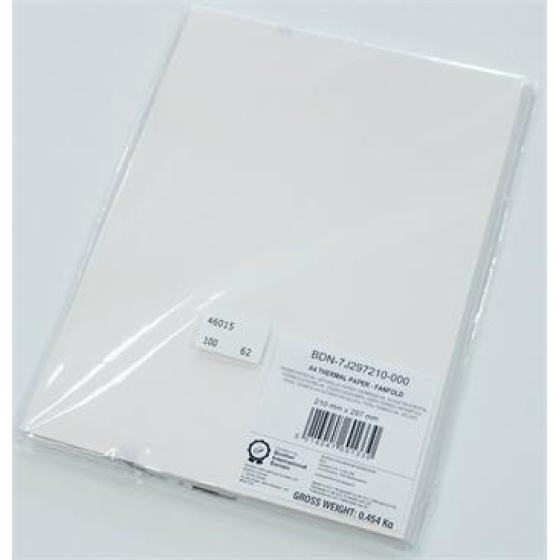 termo papier BROTHER pre: Pocket Jet PJ-7xx Pocket Jet PJ-8xx Premium A4 thermal paper FANFOLD balenie obsahuje 100 hárkov termo papiera formátu A4 garancia až do cca 12 rokov záruky čitateľnosti při uložení výtlačku v podmienkach vhodných pre skladovanie FANFOLD s čiernou značkou