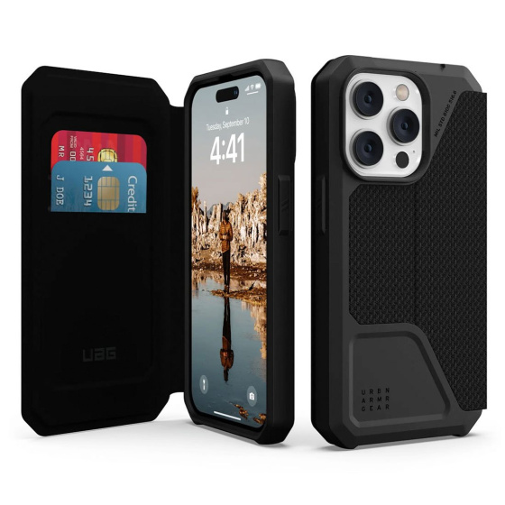 Popis UAG puzdro Metropolis Folio pre iPhone 14 Pro - Kevlar Black