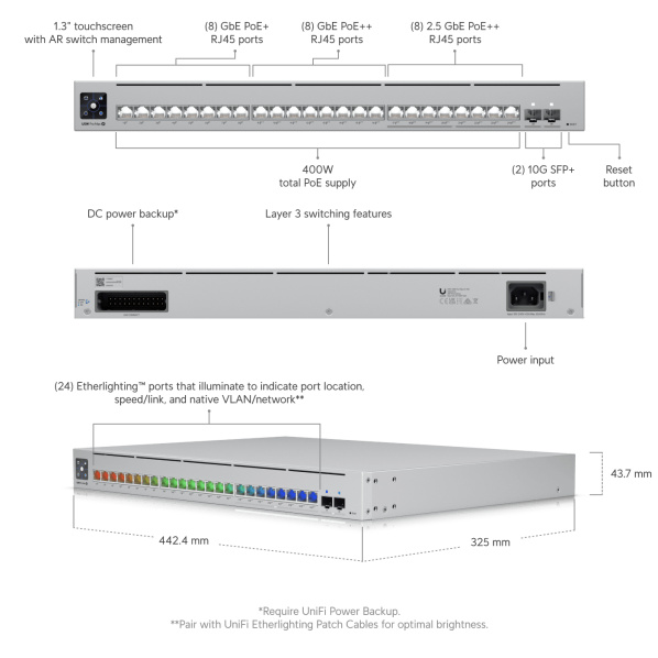 Dimensions 442 x 325 x 44 mm (17.4 x 12.8 x 1.7")