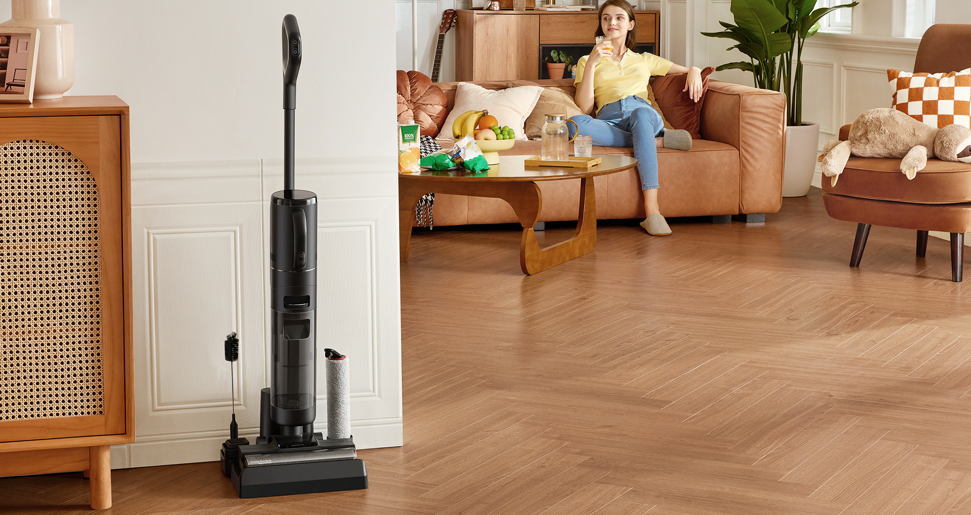Stačí položiť vysávač na základňu a stlačiť tlačidlo, aby sa pri čistení s dvojitou rotáciou roztočila kefa dopredu a dozadu vysokou rýchlosťou, aby sa lepšie umyla a odstránila nepríjemná špina a vlasy.