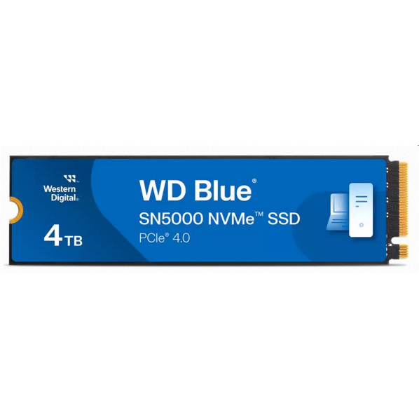 Power your intense creative workloads with NVMe™. The WD Blue SN5000 NVMe™ SSD is next-generation storage designed for creators and professionals. Fuel your AI-enabled applications and accelerate your workflow with NVMe, PCIe® Gen 4, and Western Digital nCache™ 4.0 technology. Plus, create without limits with up to 4TB1 capacity. No matter your creative process, the WD Blue SN5000 NVMe SSD makes every step easier - and shortens the time between ideating and finalizing your creative vision. Create and store more Hold more masterpieces and enjoy endless inspiration with up to 4TB1 capacity. Boost your creative workflow Harness AI and streamline your creative workflow with the combined power of PCIe® Gen 4, up to 5,500MB/s2 read speeds (4TB1 model), and Western Digital nCache™ 4.0 Technology. Multitask like a pro Switch smoothly between applications and projects with high-end NVMe™ storage technology. Endurance for intense workloads Create confidently with up to 1,200TBW3 (4TB1 model) endurance for ideating, drafting, and finalizing your creative work. Free Acronis® True Image™ download Download Acronis® True Image™ for Western Digital data migration software to transfer your files5. Stay informed on your drive health Monitor your SSD’s performance and available space with the downloadable Western Digital Dashboard application. And gain peace of mind with a 5-year limited warranty4. Specifications Capacity 4TB Form Factor M.2 2280 Sequential Read Performance 5,500MB/s Sequential Write Performance 5,000MB/s Random Read 690K IOPS Random Write 900K IOPS Interface PCIe Gen4 x4 Warranty 5-Year Limited Warranty Endurance (TBW) 1200 Dimensions (L x W x H) 80.15mm x 22.15mm x 2.38mm Weight 5.7gms Model Number WDS400T4B0E Operating Temperature 0°C to 85°C Non-Operating Temperature -40°C to 85°C Certifications BSMI, CAN ICES-3(B)/NMB-3(B), CE, FCC, KCC, Morocco, RCM, TUV, UL, VCCI Product Features Harness AI and streamline your workflow with the combined power of PCIe® Gen 4 and Western Digital nCache™ 4.0 Switch smoothly between applications and projects with high-end NVMe™ storage technology Create confidently with heavy-duty endurance for ideating, drafting, and finalizing your creative work Compatibility Requires M.2 2280 port Compatibility may vary depending on user’s hardware configuration and operating system In The Box WD Blue SN5000 NVMe SSD 4TB Front WD Blue SN5000 NVMe SSD Model Numbers 500GB: WDS500G4B0E 1TB: WDS100T4B0E 2TB: WDS200T4B0E 4TB: WDS400T4B0E