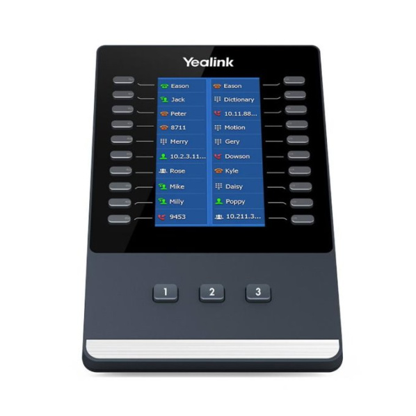 Rozšiřující modul Yealink EXP43 pro novou řadu IP telefonů Yealink T43U / T46U / T48U. Je navržen tak, aby rozšířil funkční dovednosti vašeho SIP telefonu na zcela novou úroveň. Je vybaven velkým 4,3“ barevným displejem, který vám poskytne živý vizuální zážitek. Kromě toho vám poskytuje jednoduché uživatelské rozhraní a pokročilé funkce zpracování hovorů. Na tři stránky 20 flexibilních tlačítek zobrazených na displeji lze naprogramovat až 60 různých funkcí. Můžete nastavit multifunkční tlačítka jako BLF, rychlé vytáčení, přesměrování hovoru, přepojení, parkování hovorů, vyzvednutí hovoru atd. Yealink EXP43 barevný rozšiřující modul je ideálním řešením pro recepční, administrativní pomocníky a pracovníky kontaktních center a umožňuje snadno monitorovat kontakty a spravovat velké množství hovorů. Rozšiřující modul EXP43, který lze jednoduše připojit s telefonem pomocí přiloženého kabelu, se přizpůsobí obrazovce připojeného telefonu a automaticky se přepne displej do barevného (T46U a T48U) nebo černobílého (T43U) provedení .