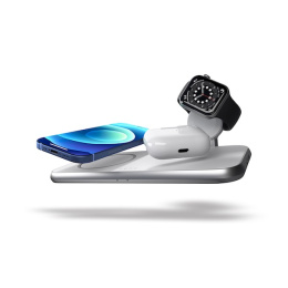 Ľahko integrujte svoj vlastný MagSafe do nabíjačky. Nabíjačka neobsahuje MagSafe modul. Zabudovaný modul Apple Watch nabíja vaše Apple Watch v režime spánku a zároveň napája váš iPhone a AirPods. S elegantným prémiovým bielym dizajnom vyrobeným z prvotriedneho hliníka sa táto nabíjačka skvele hodí kdekoľvek. Nabíjačka má na svojej zadnej strane zabudovaný port USB-A na nabíjanie tretieho zariadenia. Dodáva sa s 45W napájacím adaptérom USB-C PD, ktorý má zabudovanú zásuvku USB-A na integráciu vášho MagSafe. Vlastnosti: - Riešenie bezdrôtového nabíjania 4 v 1 určené pre MagSafe - Ľahko integrujte svoj vlastný MagSafe do nabíjačky - Nabíjačka neobsahuje MagSafe modul. - Nabíja súčasne iPhone, AirPods, Apple Watch a iPad - Apple Watch sa nabíjajú v režime spánku - Nabíja štvrté zariadenie cez zabudovaný port USB-A - Prémiové biele, hliníkové prevedenie - Súčasťou je 45W napájací adaptér USB-C PD Technické špecifikácie: Typ: - trojitá bezdrôtová nabíjačka určená pre MagSafe Nabíjanie: - 2 zariadenia bezdrôtovo, Apple Watch, ďalšie zariadenie cez zabudovaný port USB - USB vstup - zabudovaný port USB-A na nabíjanie štvrtého zariadenia Dizajn: - určené na integráciu vlastnej nabíjačky MagSafe Kompatibilita: - funguje so všetkými nabíjačkami MagSafe certifikovanými MFi - funguje so všetkými zariadeniami, ktoré podporujú bezdrôtové nabíjanie Qi - funguje so všetkými hodinkami Apple - funguje s väčšinou ľahkých puzdier Certifikácia: - Qi certifikované, MFi certifikované Zdroj: - 45W napájací adaptér USB-C PD Obsah balenia: - Bezdrôtová nabíjačka MagSafe 4 v 1 - 45W napájací adaptér USB-C PD - Používateľská príručka