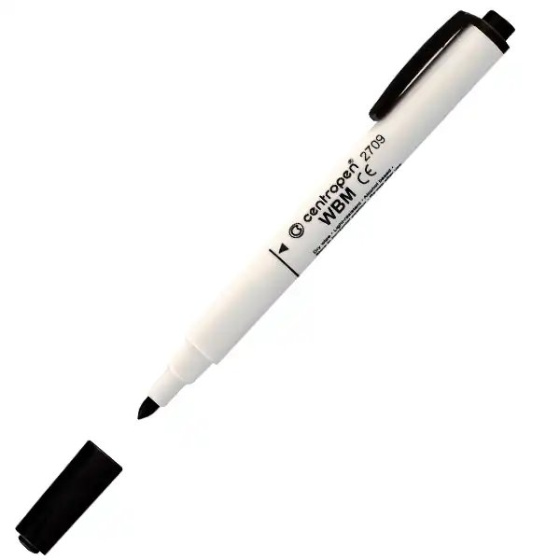 Čierny značkovač na biele stierateľné tabuľky s ERGO držaním, ktorý je zdraviu neškodlivý. Je stierateľný za sucha, svetlostály založený na alkoholovej báze. Vhodné skladovať vo vodorovnej polohe. Má valcový hrot so šírkou stopy 1,8 mm.