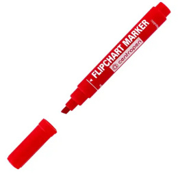 Červený značkovač na papierové tabule, ktorý sa neprepíja cez papier. Funkčnosť otvoreného značkovača je jeden týždeň. Disponuje klinovým hrotom so šírkou stopy 1-4,6 mm.