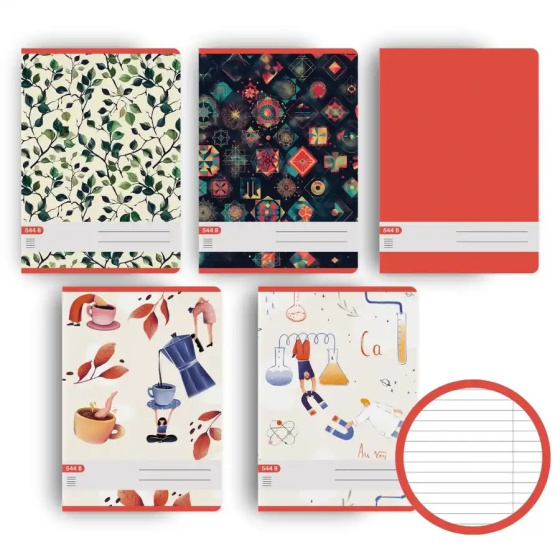 Malý 40 listový zošit 544 s klasickými linajkami (8 mm) z hladkého bezdrevného papiera, pre základné a stredné školy, balený vo fólii po 10 ks.